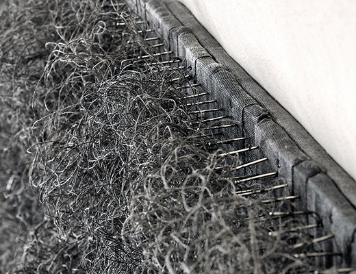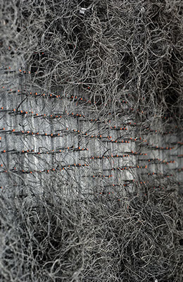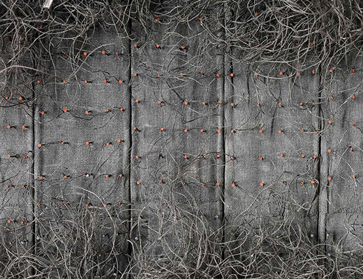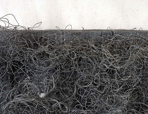 Muslin cotton, wood, veneer pins, linen thread, aluminium, acrylic paint.