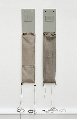 Painted linen, rope, metal washers, plywood, coconut fibre.