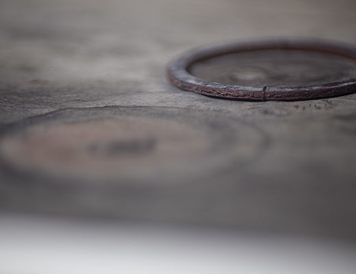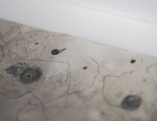 Cotton, acrylic paints, chalk pastels, plumbers washers, graphite, thread.